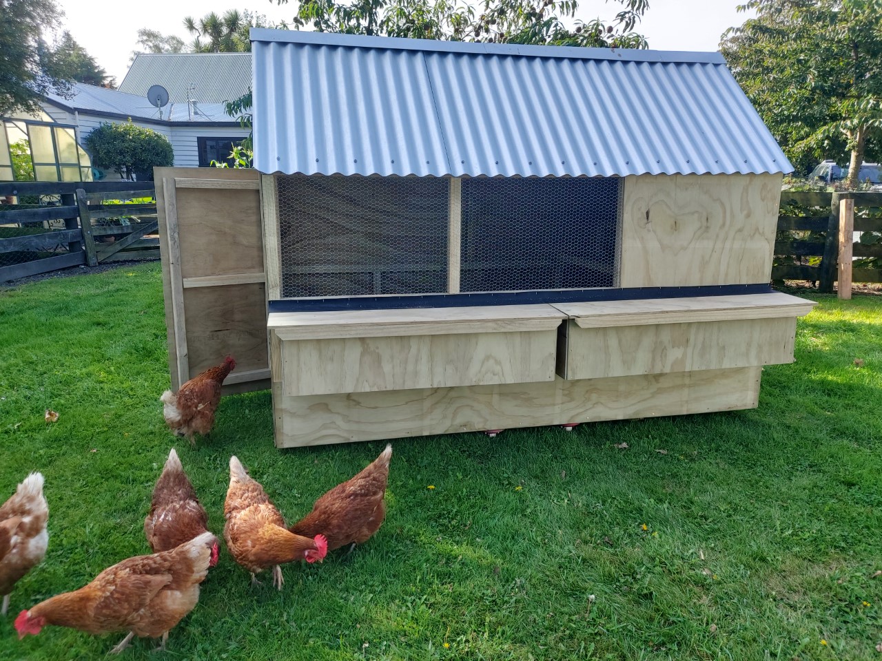 Perfect for the smaller lifestyle block. A compact option for up to 6 hens. Easily moved or tilted for hassle free cleaning. An economic design without the need for a floor or human access door .